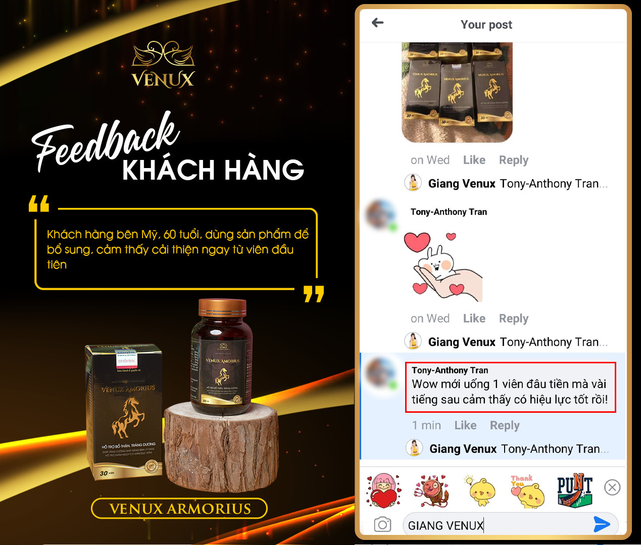 ✅Venux Amorius với thành phần từ 15 loại cao thảo dược cao cấp đặc hiệu được tuyển chọn nghiêm ngặt, dành riêng cho quý ông, hừng hực sức trai, phong độ vững bền 💪