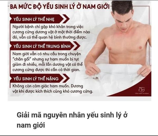 Dấu hiệu yếu_sinh_lý ở nam giới nếu không phát hiện kịp thời sẽ gây tình trạng hoang mang lo lắng khi đối diện với bạn tình. Tình trạng này kéo dài có thể ảnh hưởng tới hạnh phúc gia đình. Nhận biết yếu_sinh_lý ở nam giới qua dấu hiệu sau: