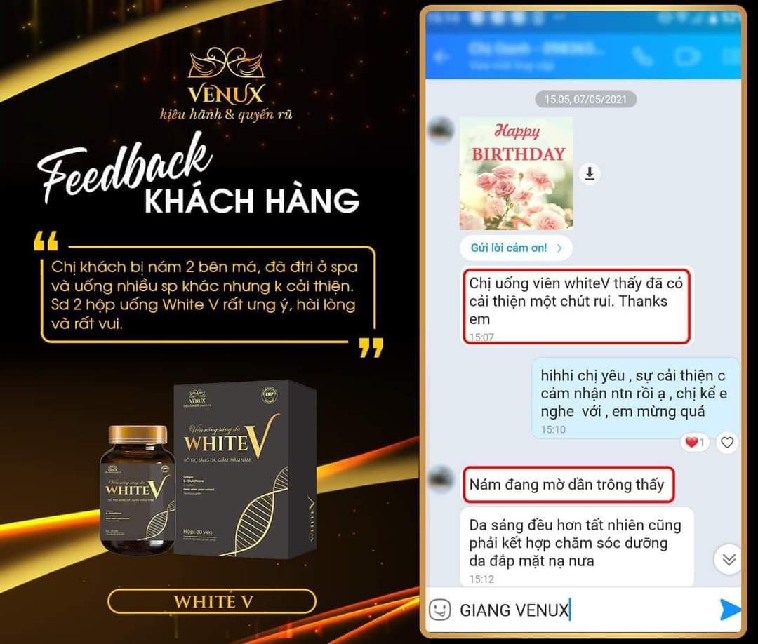 Viên uống sáng da, mờ nám #White_V được chiết xuất từ công nghệ #Nano Selen – là công nghệ duy nhất hiện tại chỉ có ở Venux, ngoài ra nguyên liệu còn cực kỳ đắt đỏ, có tác dụng chống lão hóa cho da và tái tạo cực kỳ tốt cho da.